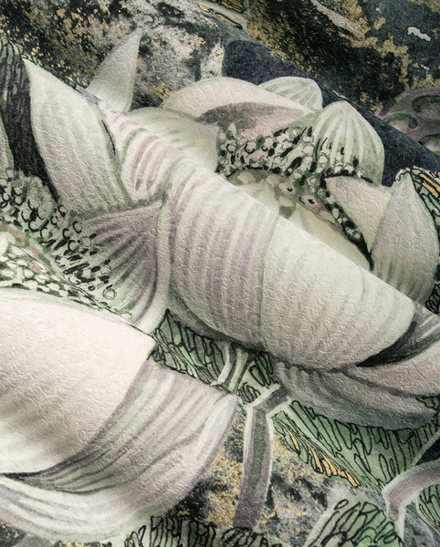 Głównym motywem tapety są kwiaty wodne, znaleźć tu można również abstrakcję. Całość wzoru tworzy spójną, harmonijną kompozycję.