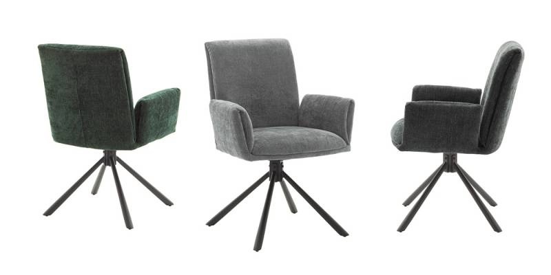 Krzesło posiada 4 skośne stabilne nogi wykonane ze stali szlachetnej szczotkowanej, a wykonane jest w tkaninie szenilowej. Jest to rodzaj tkaniny o unikalnej, puszystej i miękkiej powierzchni.