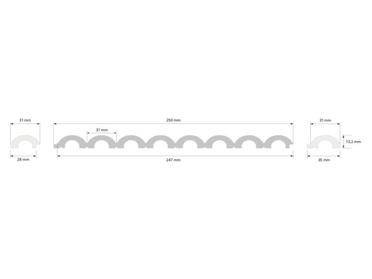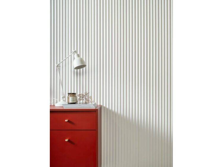Geometryczny wzór z półokrągłą, trójwymiarową strukturą. Panele możesz użyć też na frontach szafek, jako okleinę wysp kuchennych, czy jako zagłówek łóżka. Panele fabrycznie pokryte są najwyższej jakości białą farbą podkładową, co powoduje, że są idealnie przygotowane do pomalowania ich na dowolny kolor. Panele są również w pełni wodoodporne, dlatego możesz użyć je w łazience, czy w każdym innym wilgotnym pomieszczeniu. Ciągły kontakt z wodą w żaden negatywny sposób nie wpłynie na wygląd czy kształt paneli. Konstrukcja paneli umożliwia szybki i bezproblemowy montaż – elementy precyzyjnie wsuwają się w siebie, tworząc jednolity wzór, bez widocznych łączeń.