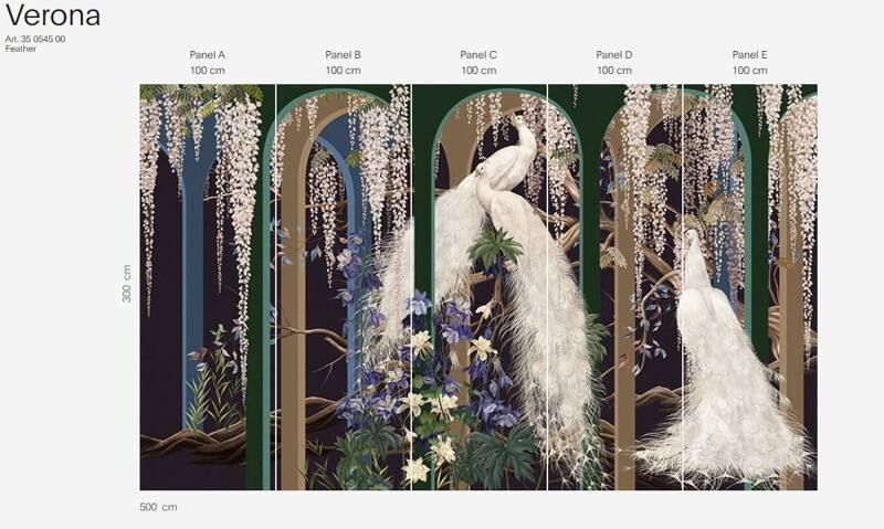Murale marki Wonderwall sprzedajemy w rolkach o standardowych wymiarach: 100 cm x 300 cm. Jeśli wysokość waszego pomieszczenia jest mniejsza niż 3 metry, wówczas nadmiar tapety należy w odpowiednim miejscu odciąć. Na pełny wzór składa się pięć rolek: a, b, c, d i e. Można wybrać konkretne rolki dopasowując tapetę do swojego wnętrza. Lub można przygotować mural pod konkretny wymiar. W tym celu prosimy o kontakt pod mail sklep@iguane.pl