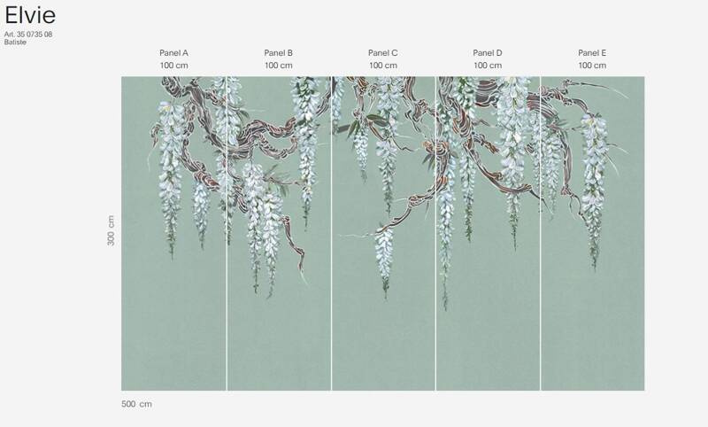 Murale marki Wonderwall sprzedajemy w rolkach o standardowych wymiarach: 100 cm x 300 cm. Jeśli wysokość waszego pomieszczenia jest mniejsza niż 3 metry, wówczas nadmiar tapety należy w odpowiednim miejscu odciąć. Na pełny wzór składa się pięć rolek: a, b, c, d i e. Można wybrać konkretne rolki dopasowując tapetę do swojego wnętrza. Lub można przygotować mural pod konkretny wymiar. W tym celu prosimy o kontakt pod mail sklep@iguane.pl
