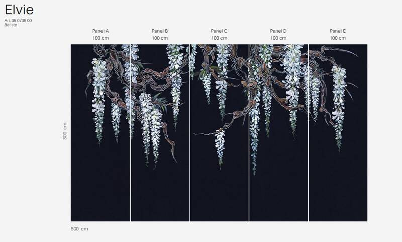 Murale marki Wonderwall sprzedajemy w rolkach o standardowych wymiarach: 100 cm x 300 cm. Jeśli wysokość waszego pomieszczenia jest mniejsza niż 3 metry, wówczas nadmiar tapety należy w odpowiednim miejscu odciąć. Na pełny wzór składa się pięć rolek: a, b, c, d i e. Można wybrać konkretne rolki dopasowując tapetę do swojego wnętrza. Lub można przygotować mural pod konkretny wymiar. W tym celu prosimy o kontakt pod mail sklep@iguane.pl