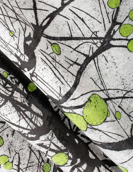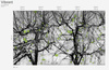 Głównym motywem tapety są drzewa na szarym tle. Całość wzoru tworzy spójną, harmonijną kompozycję.
