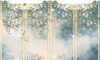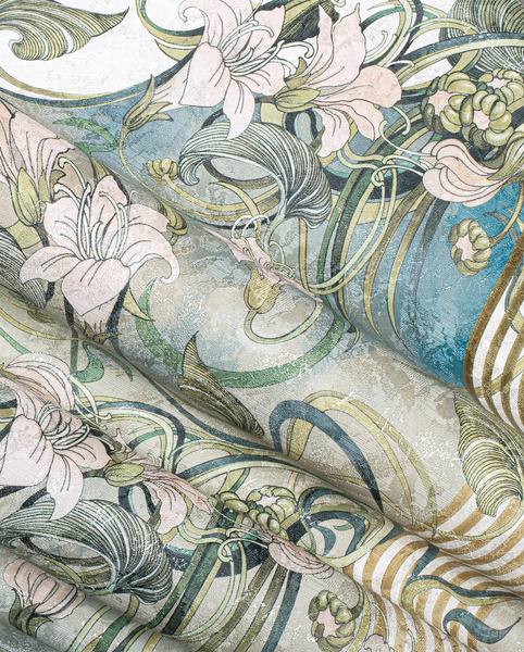Głównym motywem tapety są kwiaty i kolumny. Całość wzoru tworzy spójną, harmonijną kompozycję.