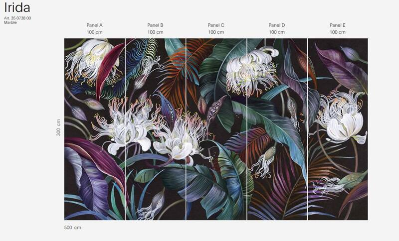 Murale marki Wonderwall sprzedajemy w rolkach o standardowych wymiarach: 100 cm x 300 cm. Jeśli wysokość waszego pomieszczenia jest mniejsza niż 3 metry, wówczas nadmiar tapety należy w odpowiednim miejscu odciąć. Na pełny wzór składa się pięć rolek: a, b, c, d i e. Można wybrać konkretne rolki dopasowując tapetę do swojego wnętrza. Lub można przygotować mural pod konkretny wymiar. W tym celu prosimy o kontakt pod mail sklep@iguane.pl