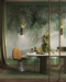 Głównym motywem tapety są liście palmowe. Całość wzoru tworzy spójną, harmonijną kompozycję.