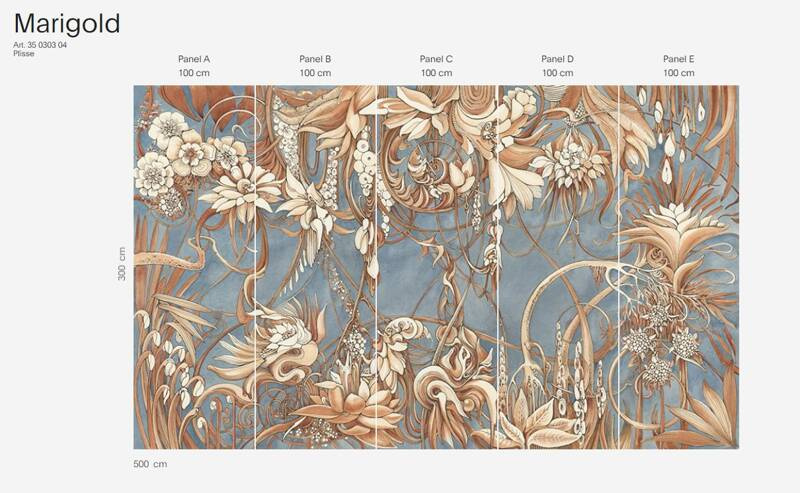Murale marki Wonderwall sprzedajemy w rolkach o standardowych wymiarach: 100 cm x 300 cm. Jeśli wysokość waszego pomieszczenia jest mniejsza niż 3 metry, wówczas nadmiar tapety należy w odpowiednim miejscu odciąć. Na pełny wzór składa się pięć rolek: a, b, c, d i e. Można wybrać konkretne rolki dopasowując tapetę do swojego wnętrza. Lub można przygotować mural pod konkretny wymiar. W tym celu prosimy o kontakt pod mail sklep@iguane.pl