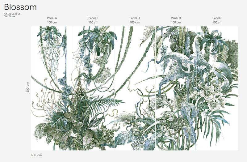 Murale marki Wonderwall sprzedajemy w rolkach o standardowych wymiarach: 100 cm x 300 cm. Jeśli wysokość waszego pomieszczenia jest mniejsza niż 3 metry, wówczas nadmiar tapety należy w odpowiednim miejscu odciąć. Na pełny wzór składa się pięć rolek: a, b, c, d i e. Można wybrać konkretne rolki dopasowując tapetę do swojego wnętrza. Lub można przygotować mural pod konkretny wymiar. W tym celu prosimy o kontakt pod mail sklep@iguane.pl