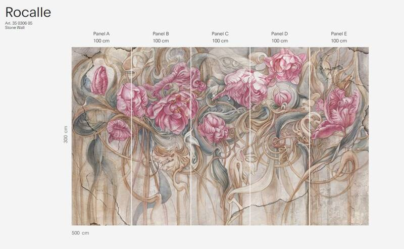 Murale marki Wonderwall sprzedajemy w rolkach o standardowych wymiarach: 100 cm x 300 cm. Jeśli wysokość waszego pomieszczenia jest mniejsza niż 3 metry, wówczas nadmiar tapety należy w odpowiednim miejscu odciąć. Na pełny wzór składa się pięć rolek: a, b, c, d i e. Można wybrać konkretne rolki dopasowując tapetę do swojego wnętrza. Lub można przygotować mural pod konkretny wymiar. W tym celu prosimy o kontakt pod mail sklep@iguane.pl