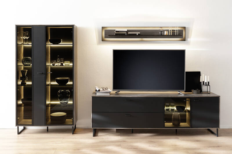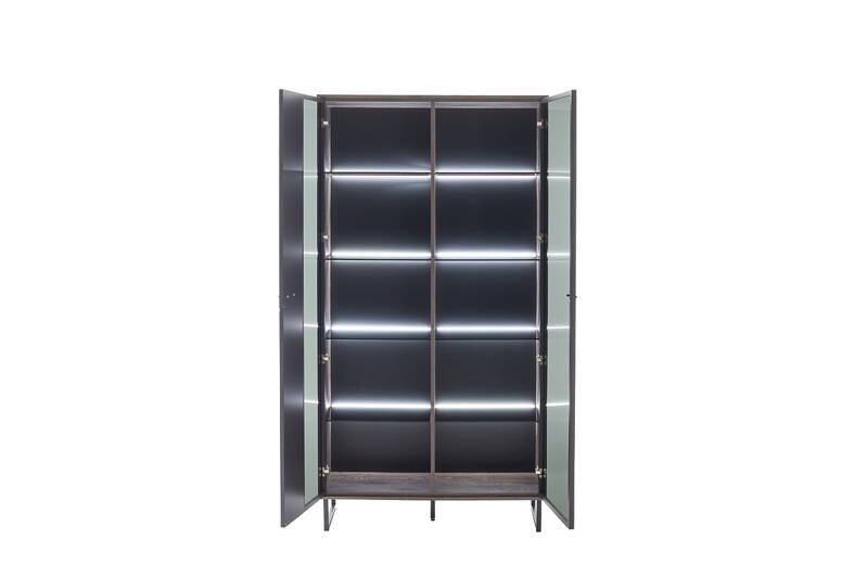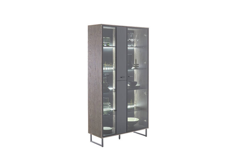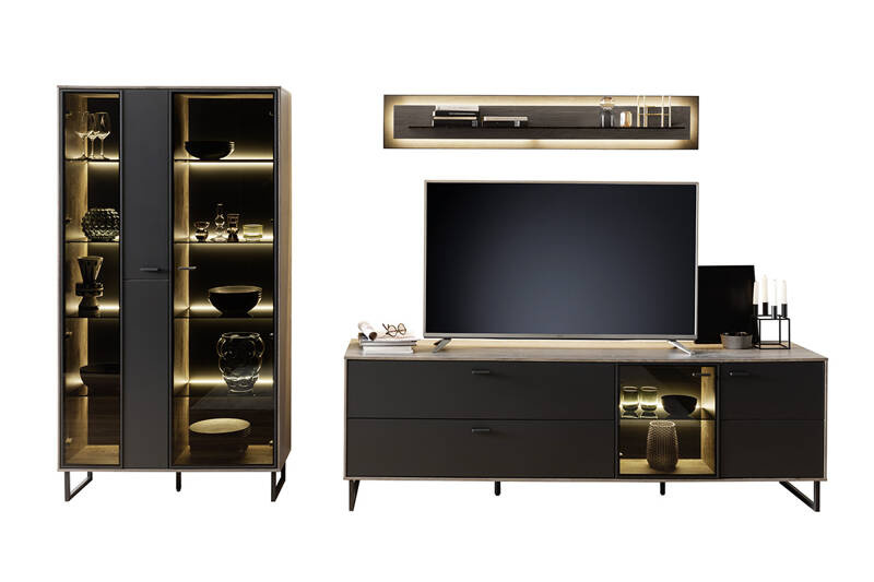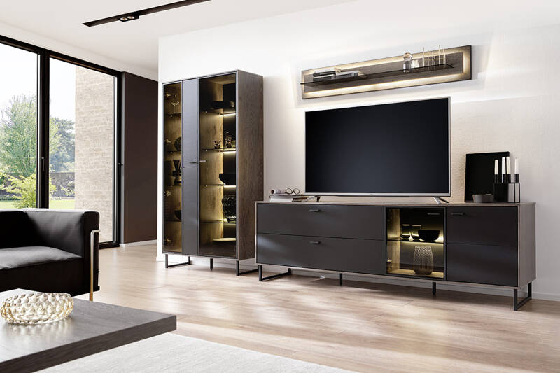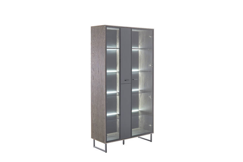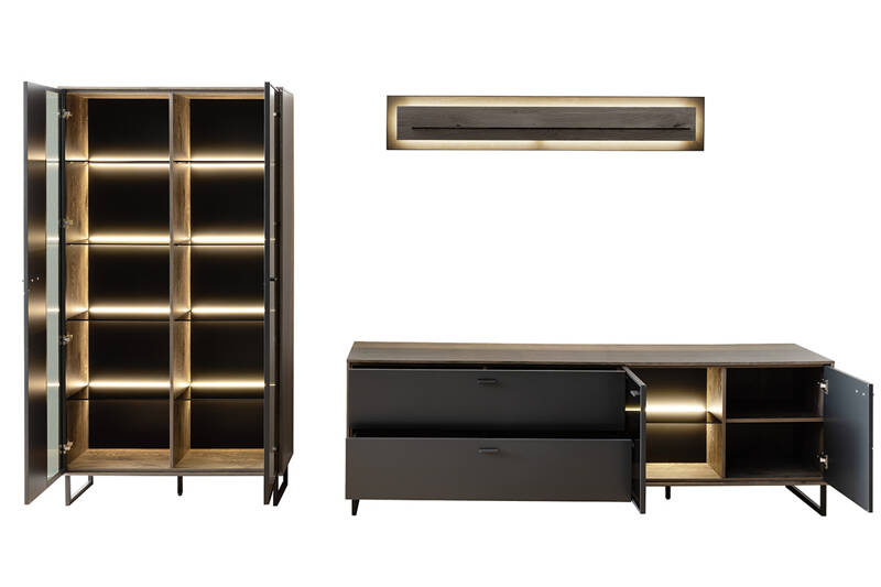 • Witryna duża, lakier czarnoszary matowy + okleina dębowa vulcano, oświetlenie Led