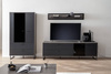 Witryna ma 2 szuflady i 2 drzwi z półkami. Jedne z drzwi mają czarne szkło. Szuflady i drzwi posiadają cichy domyk.