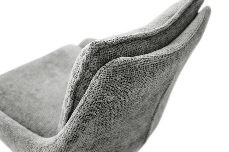 Krzesło posiada 4 skośne stabilne nogi wykonane z metalu, lakierowane na czarny mat, a wykonane jest w tkaninie z grubym, ciekawym splotem.