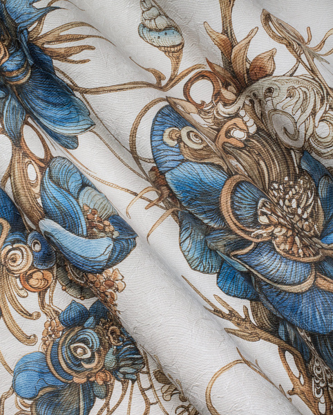 Głównym motywem tapety są kwiaty układające się w oryginalny ornament. Całość wzoru tworzy spójną, harmonijną kompozycję.