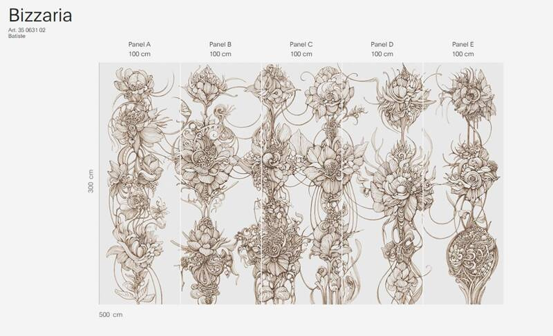 Murale marki Wonderwall sprzedajemy w rolkach o standardowych wymiarach: 100 cm x 300 cm. Jeśli wysokość waszego pomieszczenia jest mniejsza niż 3 metry, wówczas nadmiar tapety należy w odpowiednim miejscu odciąć. Na pełny wzór składa się pięć rolek: a, b, c, d i e. Można wybrać konkretne rolki dopasowując tapetę do swojego wnętrza. Lub można przygotować mural pod konkretny wymiar. W tym celu prosimy o kontakt pod mail sklep@iguane.pl