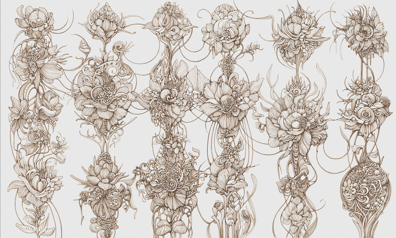 Głównym motywem tapety są kwiaty układające się w oryginalny ornament. Całość wzoru tworzy spójną, harmonijną kompozycję.