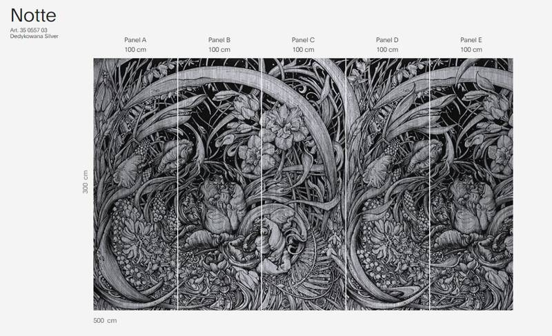 Murale marki Wonderwall sprzedajemy w rolkach o standardowych wymiarach: 100 cm x 300 cm. Jeśli wysokość waszego pomieszczenia jest mniejsza niż 3 metry, wówczas nadmiar tapety należy w odpowiednim miejscu odciąć. Na pełny wzór składa się pięć rolek: a, b, c, d i e. Można wybrać konkretne rolki dopasowując tapetę do swojego wnętrza. Lub można przygotować mural pod konkretny wymiar. W tym celu prosimy o kontakt pod mail sklep@iguane.pl