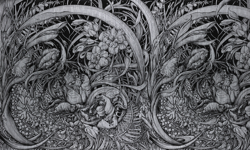 Głównym motywem tapety są kwiaty. Całość wzoru tworzy spójną, harmonijną kompozycję.