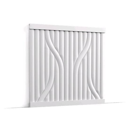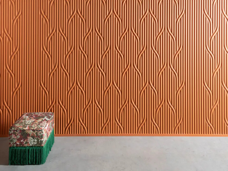Bawiąc się kierunkiem paneli i wysokością położenia, można tworzyć intrygujące wzory i tekstury. Zaprojektowany przez Orio Tonini.