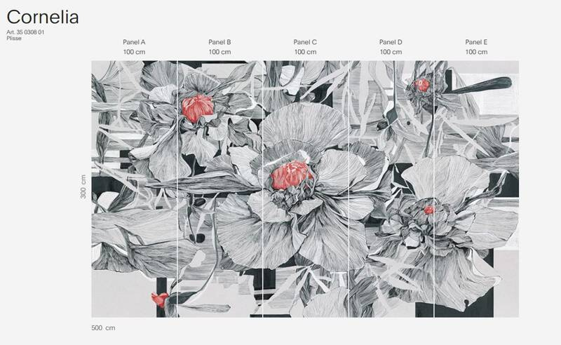 Murale marki Wonderwall sprzedajemy w rolkach o standardowych wymiarach: 100 cm x 300 cm. Jeśli wysokość waszego pomieszczenia jest mniejsza niż 3 metry, wówczas nadmiar tapety należy w odpowiednim miejscu odciąć. Na pełny wzór składa się pięć rolek: a, b, c, d i e. Można wybrać konkretne rolki dopasowując tapetę do swojego wnętrza. Lub można przygotować mural pod konkretny wymiar. W tym celu prosimy o kontakt pod mail sklep@iguane.pl