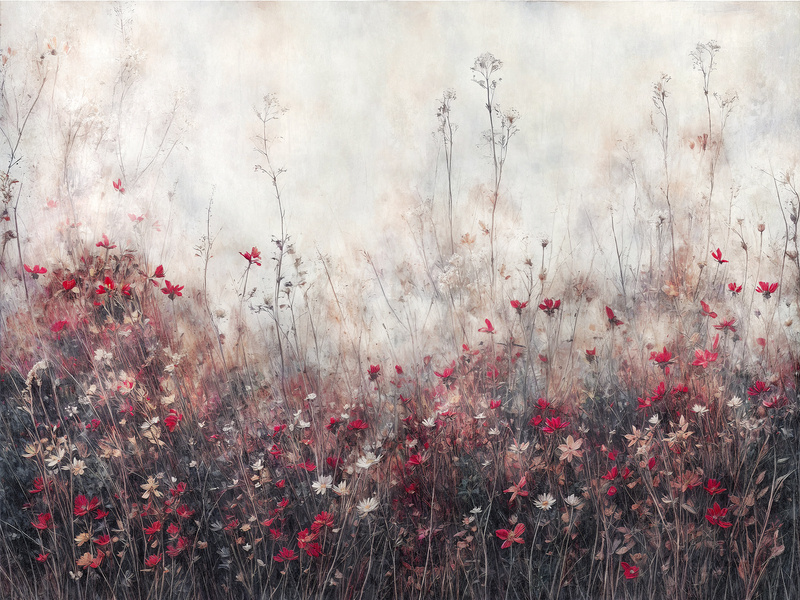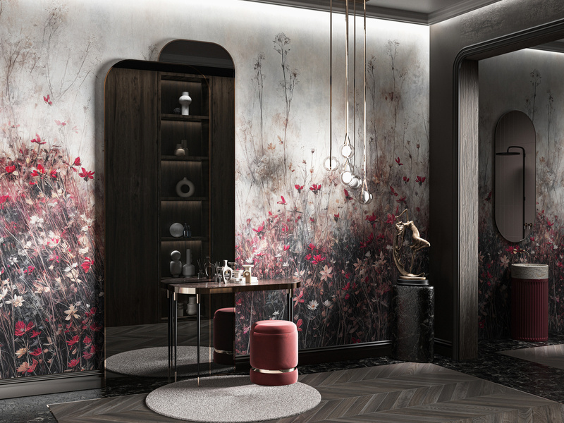 Mural Acaia przedstawia polne kwiaty w ciepłych, naturalnych barwach. Wzór wprowadzi do wnętrza dużo nowości, spokoju i romantyzmu. Sprawdzi się w minimalistycznych, art-deco, nowoczesnych, a nawet loftowych wnętrzach.