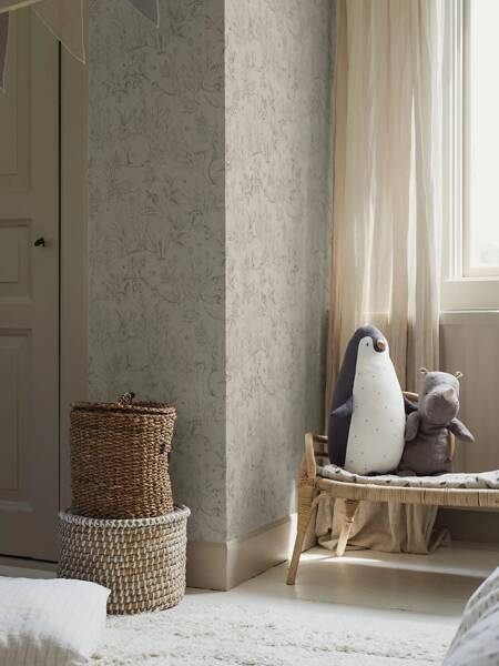 Tapeta Forest Friends to wynik współpracy studia projektowego Newbie i firmy Boråstapeter. Powieś go w sypialni, pokoju zabaw lub gabinecie swojego dziecka, aby dodać mu odrobinę trwałego uroku i skandynawskiego stylu.