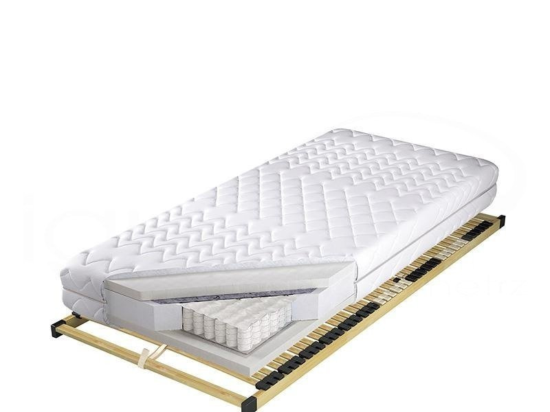 Wkład ze sprężyn woreczkowych, z wysokogatunkowego drutu, obłożony jest z jednej strony przekładką tapicerską, a z drugiej siatką tapicerską oraz obustronnie 30 mm warstwą pianki lateksoidalnej.