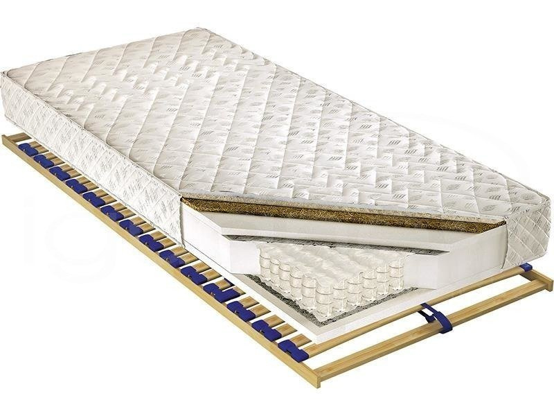 Wkład ze sprężyn woreczkowych, z wysokogatunkowego drutu, obłożony jest obustronnie przekładką tapicerską i pianką poliuretanową o zwiększonej sprężystości oraz lateksowaną płytą kokosu.