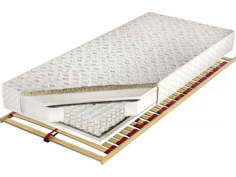 Wkład: ze sprężyn woreczkowych, z wysokogatunkowego drutu, obłożony jest obustronnie przekładką tapicerską i pianką poliuretanową T25-25 mm o zwiększonej sprężystości.