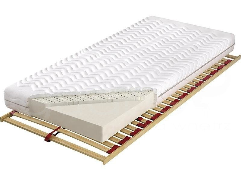 Wkład materaca pianka poliuretanowa T25-120 mm o zwiększonej sprężystości i lateks 30 mm. W zastosowanym lateksie nie rozwijają się bakterie i grzyby. Materac nie ulega deformacji z upływem czasu.