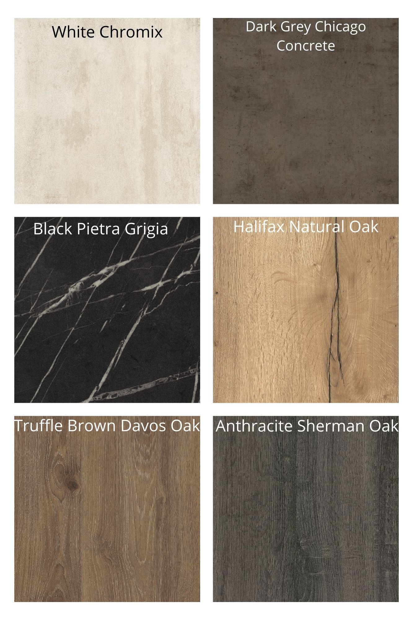 - Dostępne kolory: kilkanaście dekorów blatów i kilka kolorów podstaw
