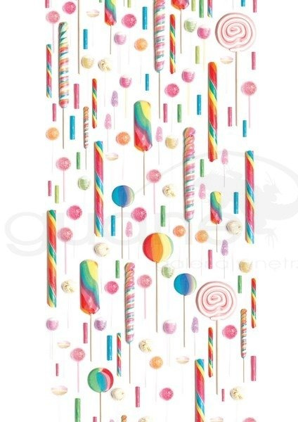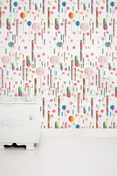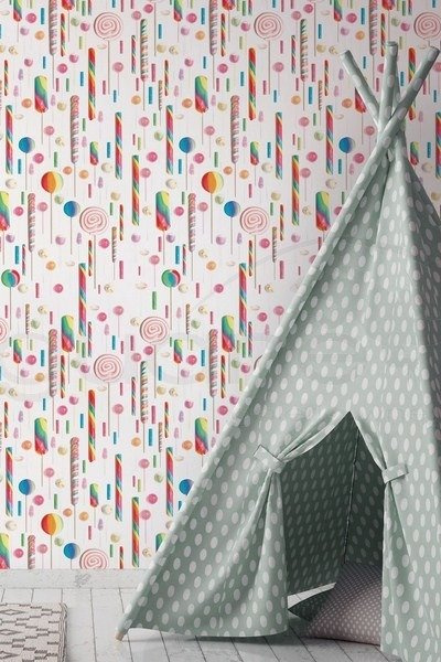 Tapeta Lolliepops - kolorowa tapeta dziecięca z motywem lizaków na białym tle.
