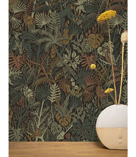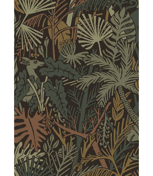 Wielobarwny wzór rysowanych liści i ukrytych między nimi zwierząt  daje naturalny i tajemniczy akcent. Sprawi, że twoje wnętrze nabierze przytulności i charakteru.
