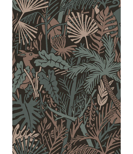 Wielobarwny wzór rysowanych liści i ukrytych między nimi zwierząt daje naturalny i tajemniczy akcent. Sprawi, że twoje wnętrze nabierze przytulności i charakteru.